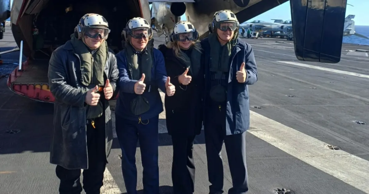 El mandatario arribó al buque luego de despegar desde Aeroparque a las 10 de la mañana y aterrizar sobre la cubierta cerca del mediodía, en una jornada marcada por operaciones aéreas y navales coordinadas entre ambas fuerzas.