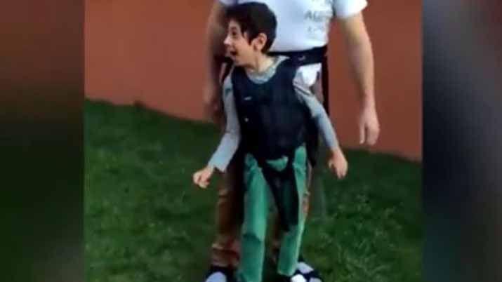 Caminar puede ser algo extremadamente común para la mayoría de la gente. Y un milagro para otros. Eso explica la cara de felicidad de este nene cuando su papá lo hizo "caminar" y jugar al fútbol gracias a un arnés desarrollado por la empresa Firefly Friends.