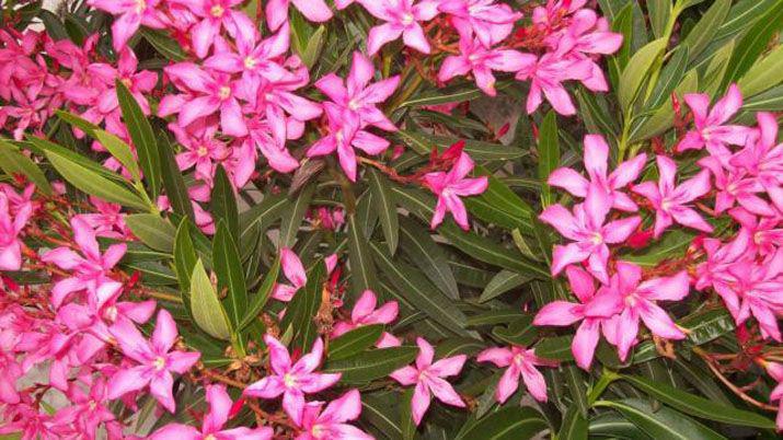 4- Laurel de jardín o adelfa: Es una planta muy tóxica. Tiene heterócidos cardiotónicos. Si se consume cualquiera de sus órganos actúan sobre el músculo cardíaco generando arritmias taquicárdicas y, en muy altas concentraciones, hasta la muerte.