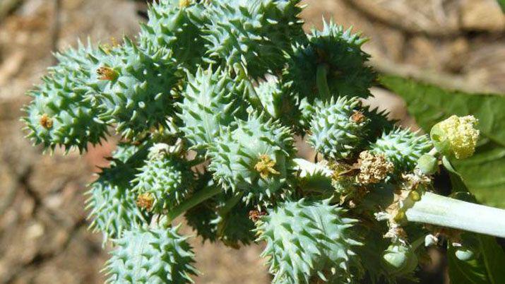 5- Tártago: Es muy común en sitios baldíos. La semilla es tóxica, porque tiene una proteína llamada ricina, que inhibe la síntesis ribosomal, causando muerte celular si se consume. Por ejemplo, tres semillas bastan para matar a una gallina.