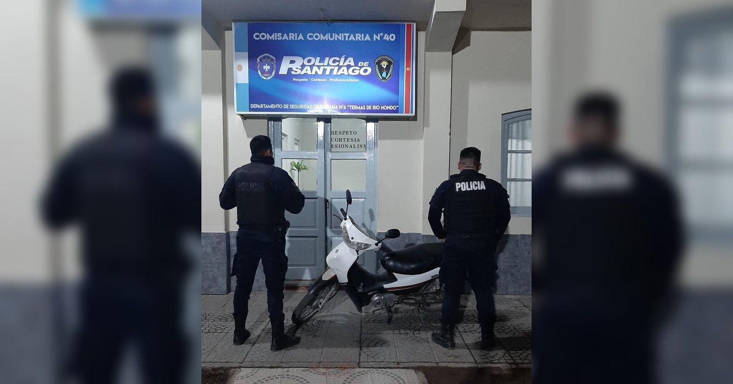 Las autoridades policiales pertenecientes a la Comisaria Comunitaria N° 40, recuperaron un motovehículo sustraído horas antes desde el estacionamiento de una escuela en el barrio Sector El Alto, en la ciudad de Las Termas de Río Hondo.
