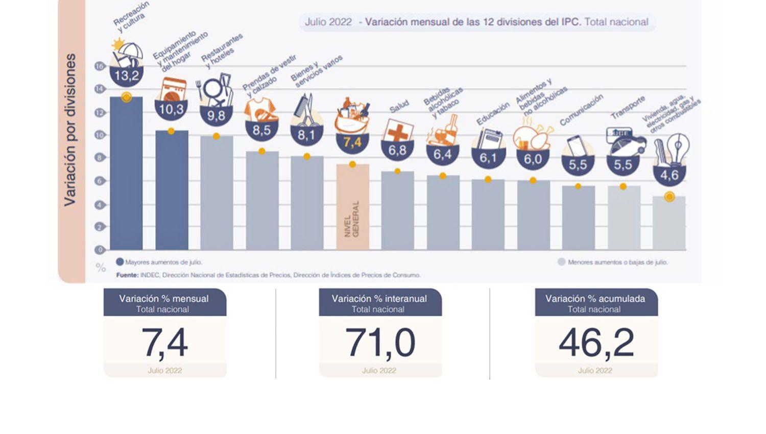 La inflación de julio fue 7,4%, la mayor en 20 años y rubros que llegan al 97% La inflación de julio fue 7,4%, la mayor en 20 años y rubros que llegan al 97%