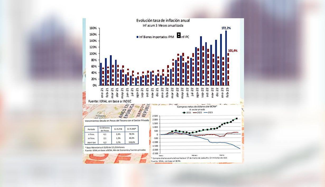 A su vez, señaló los montos decrecientes que reflejan el pago de importaciones y su impacto en la actividad. "En febrero se completaron 3 meses consecutivos con importaciones oscilando en el andarivel de los U$S 5 mil millones, un 24 % por debajo del promedio de 2022. A las dificultades para producir por la falta de insumos, se agrega ahora un fuerte desaliento a la inversión".