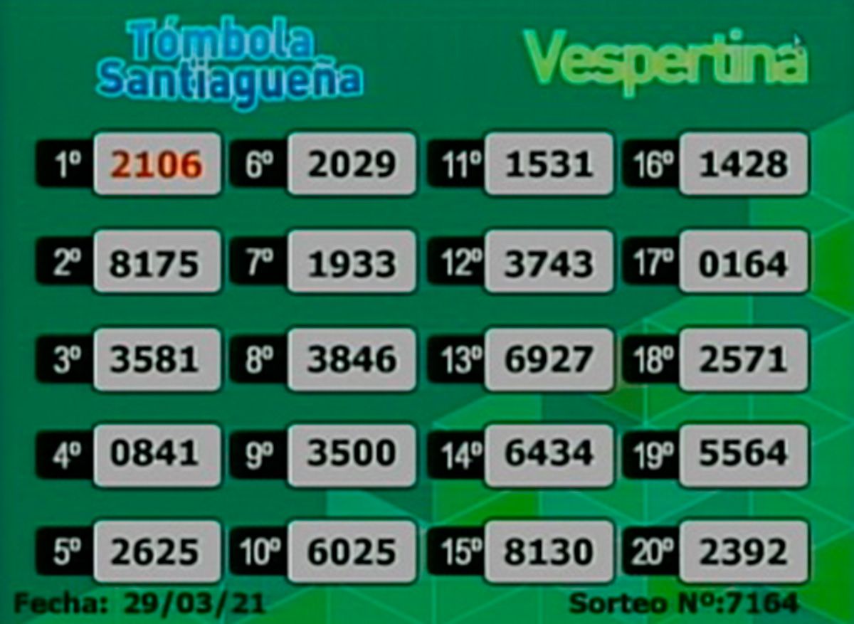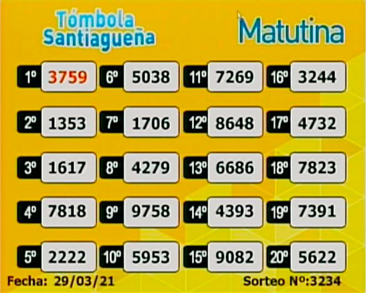 Tómbola Santiagueña: Los números de este lunes 29 de marzo Tómbola Santiagueña: Los números de este lunes 29 de marzo