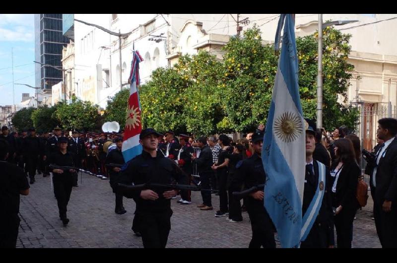 Luego de haber participado del tedeum en la Catedral Basílica, el gobernador Gerardo Zamora y demás autoridades participan del desfile Cívico-Militar que se lleva a cabo sobre calle 24 de Septiembre, frente a la plaza Libertad, con motivo de conmemorarse otro aniverasario de la Revolución de Mayo.