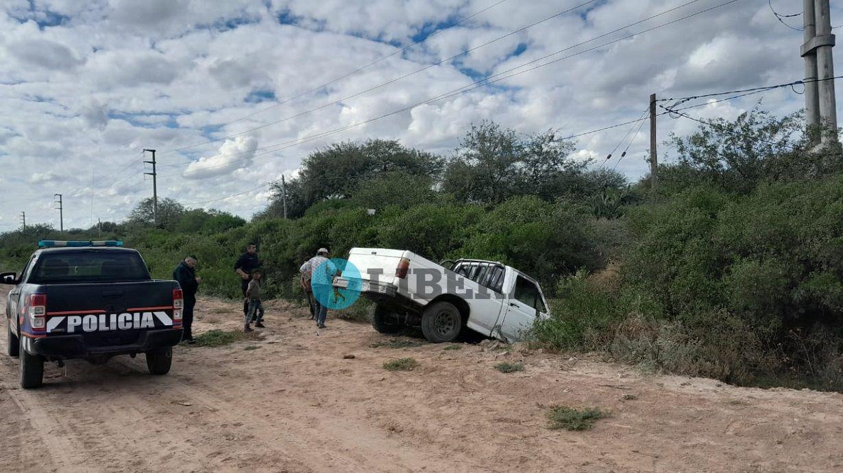 El conductor manifestó que circulaba junto a sus dos nietos de nombre Jeremías (7) y Jesús (10) por un camino paralelo a ruta 92, y sufrió un desperfecto en el extremo de la dirección delantera de su camioneta, no logrando controlar el rodado y cayendo a un canal de riego.