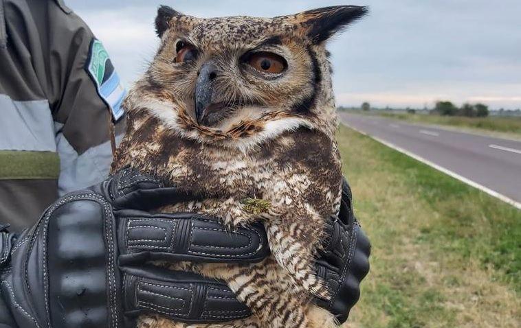 Gendarmes rescatan a Búho desorientado sobre la banquina de la Ruta Gendarmes rescatan a Búho desorientado sobre la banquina de la Ruta