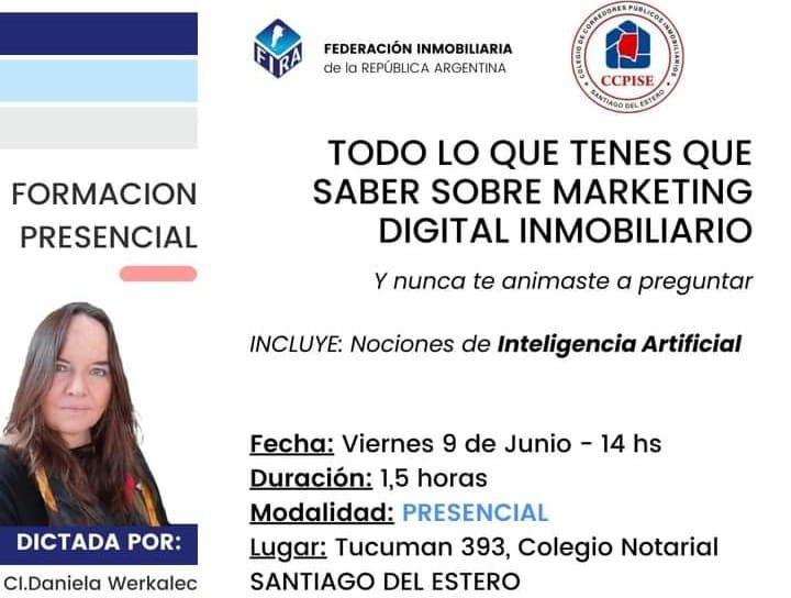 Se trata del curso de Marketing Digital Inmobiliario, a cargo de la disertante C.I. Daniela Werkalec.