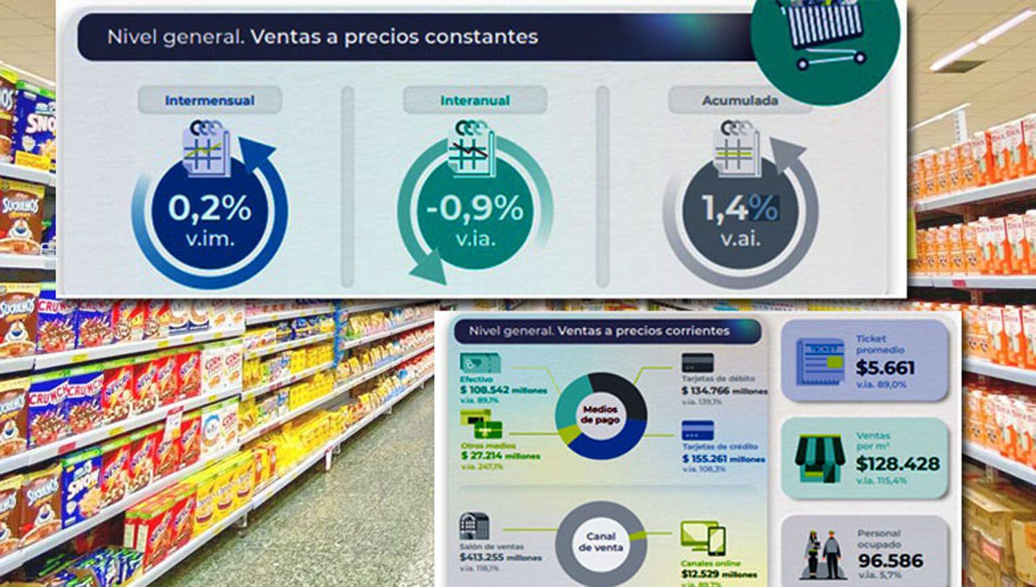 De acuerdo con los datos del Indec, en supermercados, el acumulado enero-junio de 2023 presentó una suba de 1,4% respecto de igual período de 2022. En términos mensuales, las ventas no habían caído desde diciembre de 2022, por lo que los números de junio cortan una racha de cinco meses en terreno positivo.