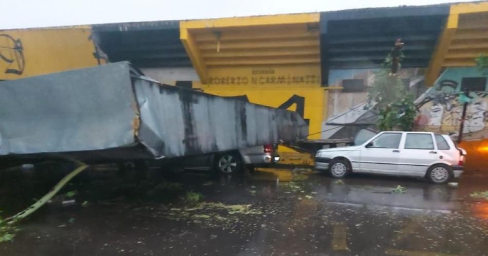 La tormenta, que tuvo fuertes ráfagas de viento, provocó la caída de grandes árboles, postes, cables, voladura de techos y carteles en la vía pública.