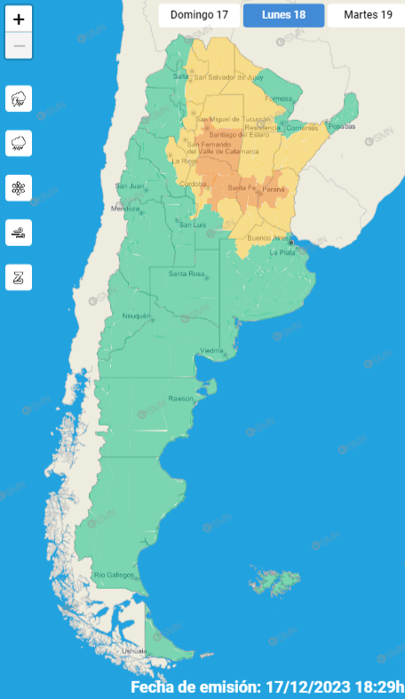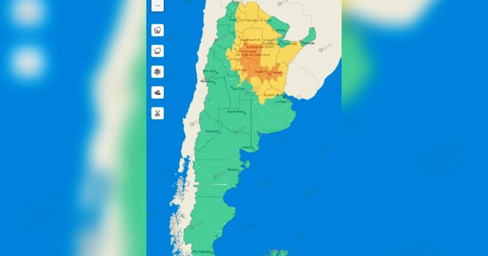 En Santiago del Estero, la situación es idéntica a la del resto de las jurisdicciones afectadas. Sin embargo, en nuestra provincia se agrega el hecho de que el Servicio Meteorológico Nacional (SMN) ha emitido una alerta naranja de probabilidad de que se produzcan tormentas de fuerte intensidad, con ráfagas intensas y caída de granizo.