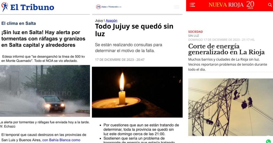 Sitios web de las diversas provincias están informando sobre los cortes a través de las redes sociales con detalles de la situación que por estas horas se desconoce el tiempo que durará.