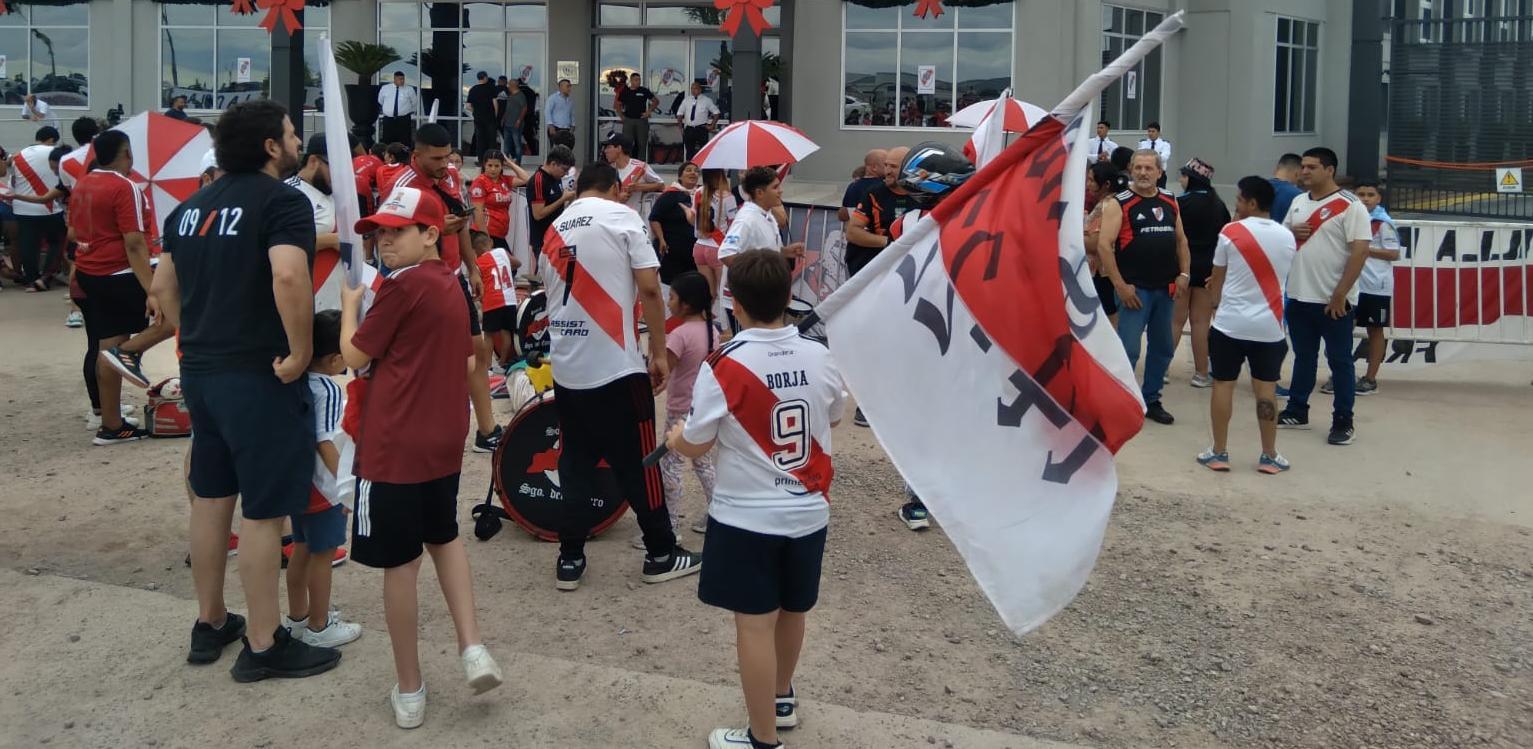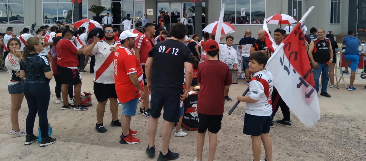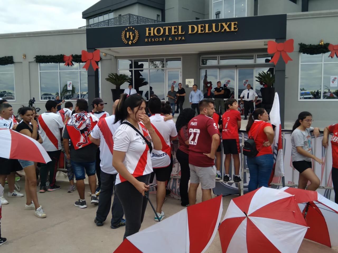 Hinchas de River se convocaron en inmediaciones del Hotel Deluxe ubicado en San Marcos, a la espera del equipo que tiene previsto arribar en los próximos minutos.