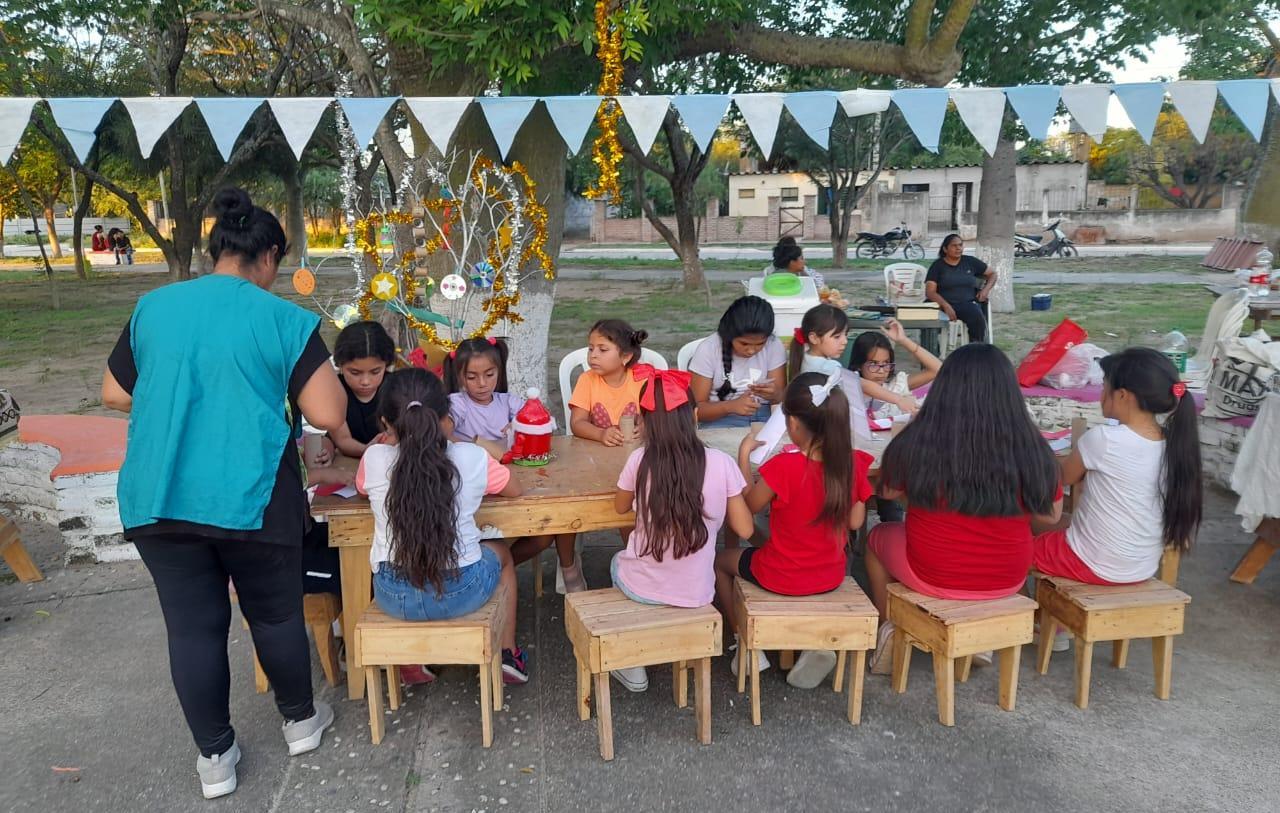 La novedad esta vez fue un taller de adornos navideños que organizó la Biblioteca Popular de Los Quiroga, con el armado de caritas de Papá Noel.