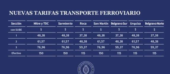 El Ministerio de Infraestructura actualizó las tarifas del transporte ferroviario.