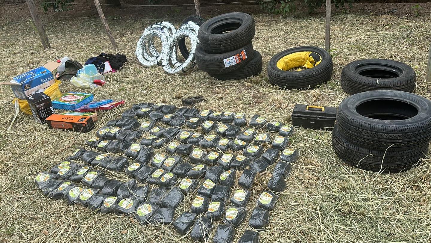 En total, fueron secuestrados 657,360 kilogramos de hojas de coca; 42 cubiertas de diferentes rodados y 110 cámaras de motos.