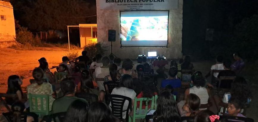 Gran cantidad de niños de Villa La Punta, acompañados por sus familias, disfrutaron este viernes de un nuevo encuentro con el cine nacional con la presencia en esta localidad del departamento Choya del Cine Móvil del Gobierno, a partir de una gestión realizada por la Biblioteca Popular "Juan Carlos Infante del Castaño".