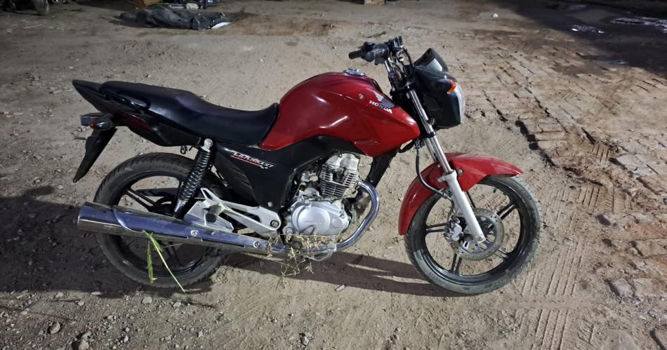 Bajo ese marco, los uniformados se dirigieron al lugar a constatar la veracidad de lo informado y una vez allí se observó a dos personas, una de sexo masculino y una femenina, quienes manifestaron que mientras transitaban por el lugar observaron que había una moto, marca Honda, color rojo y negro, modelo 2018, CG Titan 150cc, en una zona montuosa tapada con ramas.
