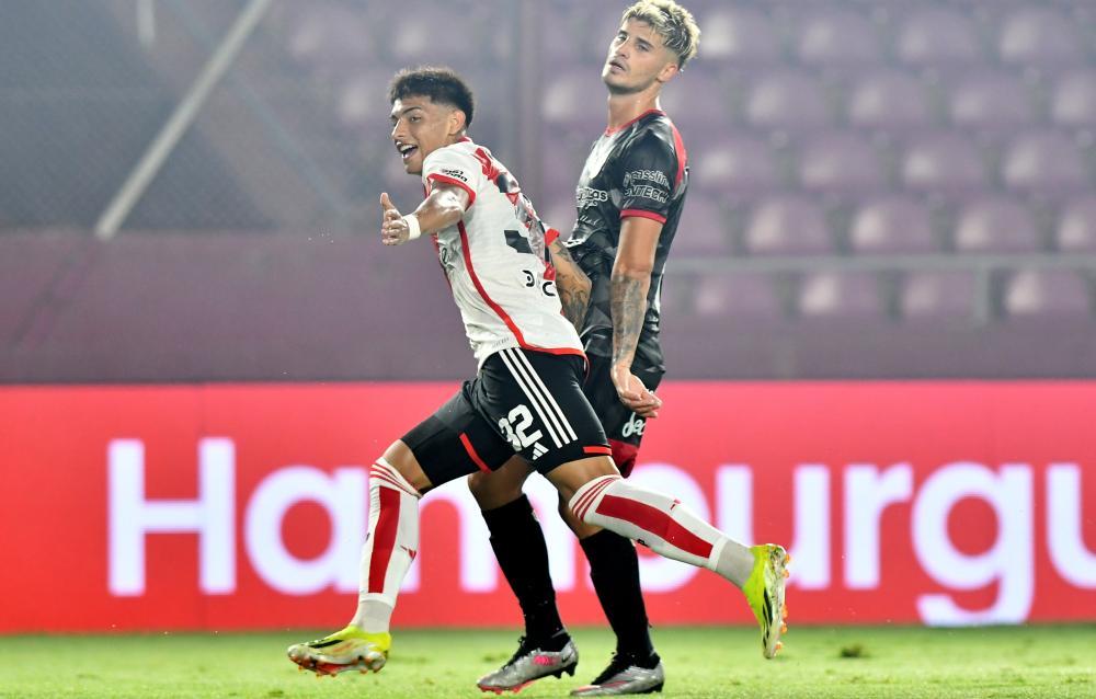 Lo mejor de River se produjo en los pies del chiquilín Mastantuono, quien debutó el domingo pasado en el empate ante Argentinos en el Monumental. Con 16 años, 5 meses y 17 días, el número "30" disputó su primer partido de titular y desplegó su mejor versión cuando lo hizo de enganche.