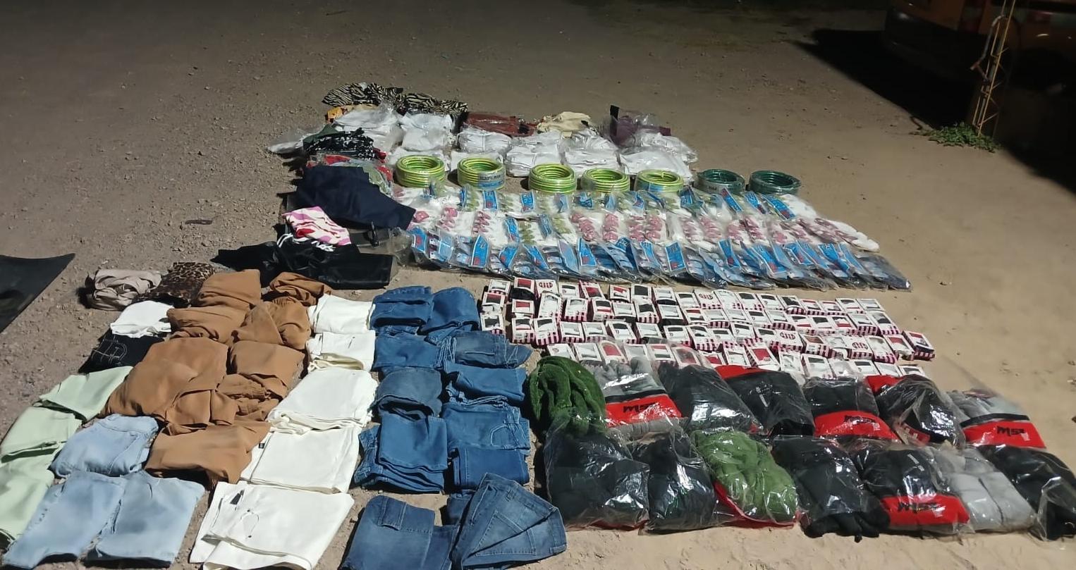 En esos momentos se realizaron los registros de los paquetes recuperados, tratándose de productos textiles tales como, guardapolvos escolares, remeras, medias, ropa interior, ropa de cama, shorts, pantalones y varios rollos de mangueras.