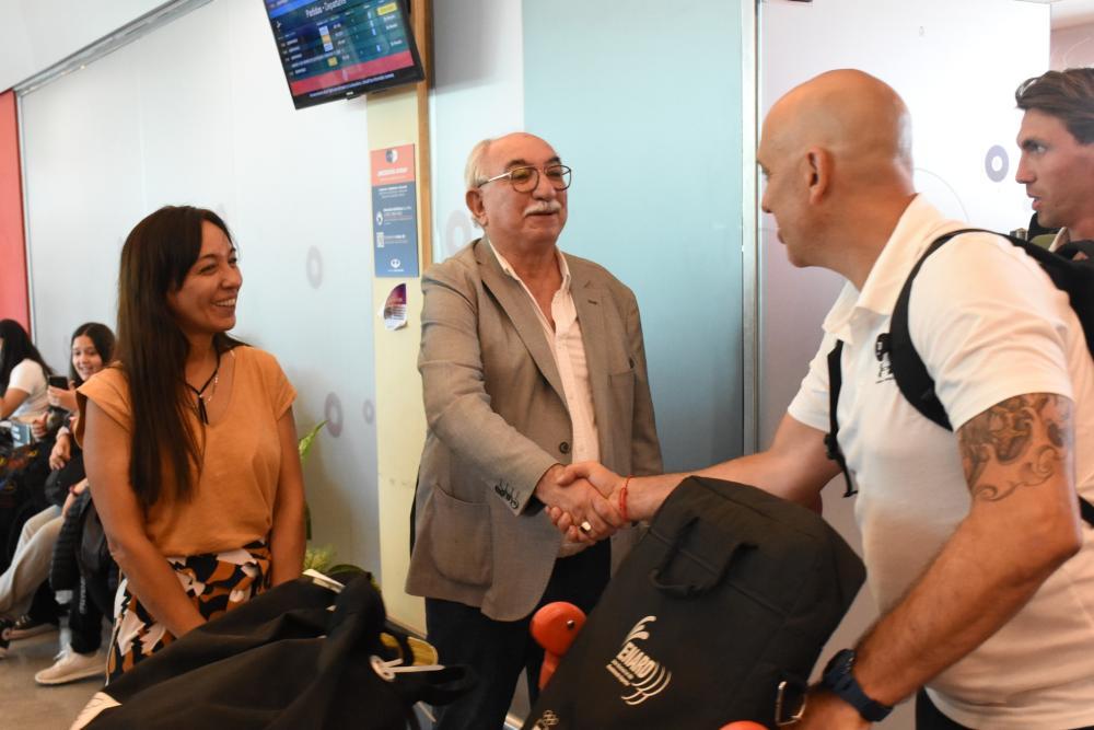 La selección nacional fue recibida por el secretario de Deportes de la provincia, Carlos Dapello, y la directora del Estadio Provincial de Hockey, Mariana García, en el aeropuerto local.