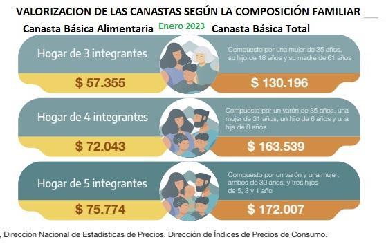 En diciembre, la canasta básica había marcado que para no ser pobre se necesitaban $495.798, siempre hablando de una familia integrada por una pareja y dos hijos.