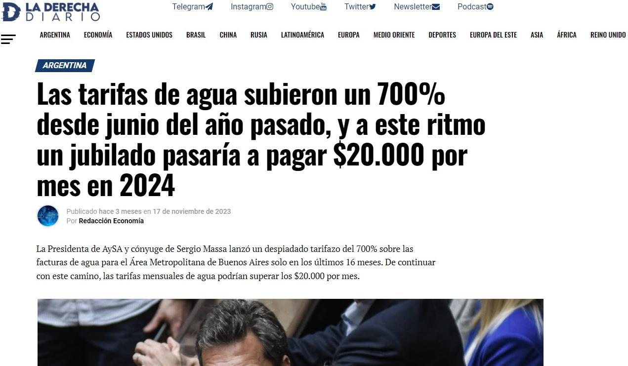 Las facturas del servicio del agua son de las más que subieron durante el año pasado a partir de junio. Con la eliminación de los subsidios de la Nación, aumentaron desde entonces un 700% en el país, de acuerdo con datos de la Dirección General de Estadística y Censos de la Capital Federal.