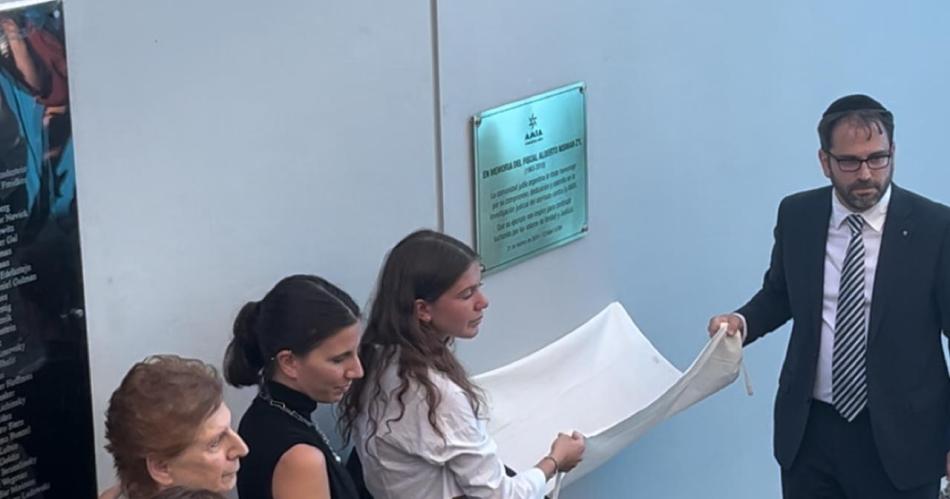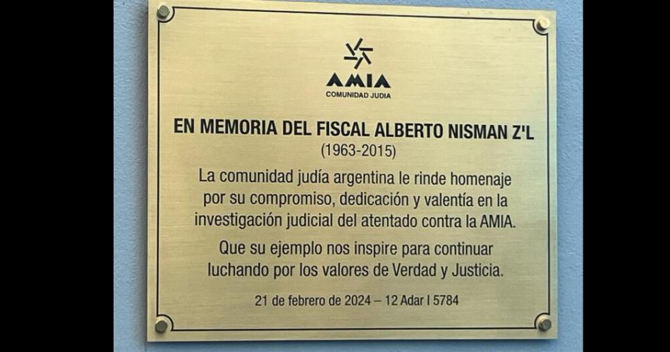 Durante la ceremonia, que comenzó a las 17 en el edificio de Pasteur 633 -reconstruido tras el atentado del 18 de julio de 1994- se descubrió una placa conmemorativa con la leyenda: "La comunidad judía argentina le rinde homenaje por su compromiso, dedicación y valentía en la investigación judicial del atentado contra la Amia".