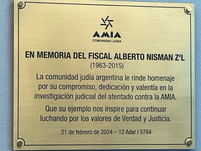 AMIA homenajeó al exfiscal Alberto Nisman con una placa en la sede AMIA homenajeó al exfiscal Alberto Nisman con una placa en la sede
