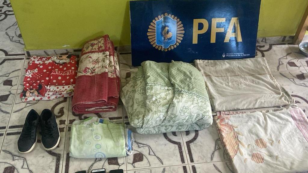 Durante el operativo en la Ciudad de La Plata, realizado junto a personal del Departamento Técnico del Cibercrimen, dos de los involucrados fueron detenidos. Además, se secuestraron varios elementos probatorios para la causa como acolchados de diferentes colores y motivos, varias sábanas, ocho teléfonos celulares, una tablet, dos notebooks y una Pc.