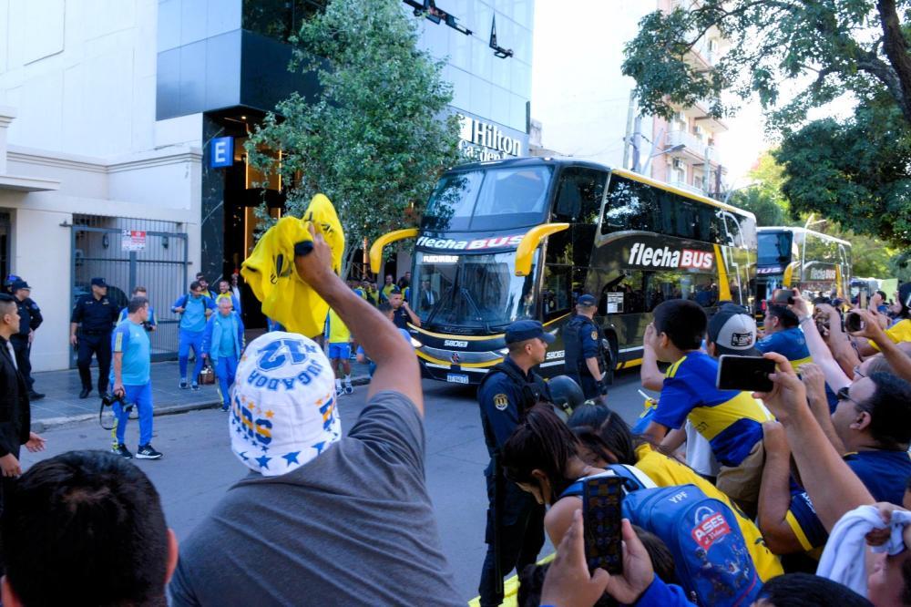 Eso se hizo realidad para los hinchas que esperaron al equipo en las afueras del hotel. El micro de Boca se dirigió directamente hacia esa concentración y los jugadores tuvieron allí una cálida bienvenida. Desde horas tempranas, la gente se llegó para ganar un lugar cerca de las vallas y poder así conseguir un recuerdo de los ídolos xeneizes.