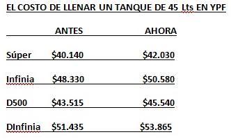 A su vez el Diésel 500 ahora cuesta $1.012 (antes $967) y el Diésel Infinia, $1.197 por litro (antes $1.143).