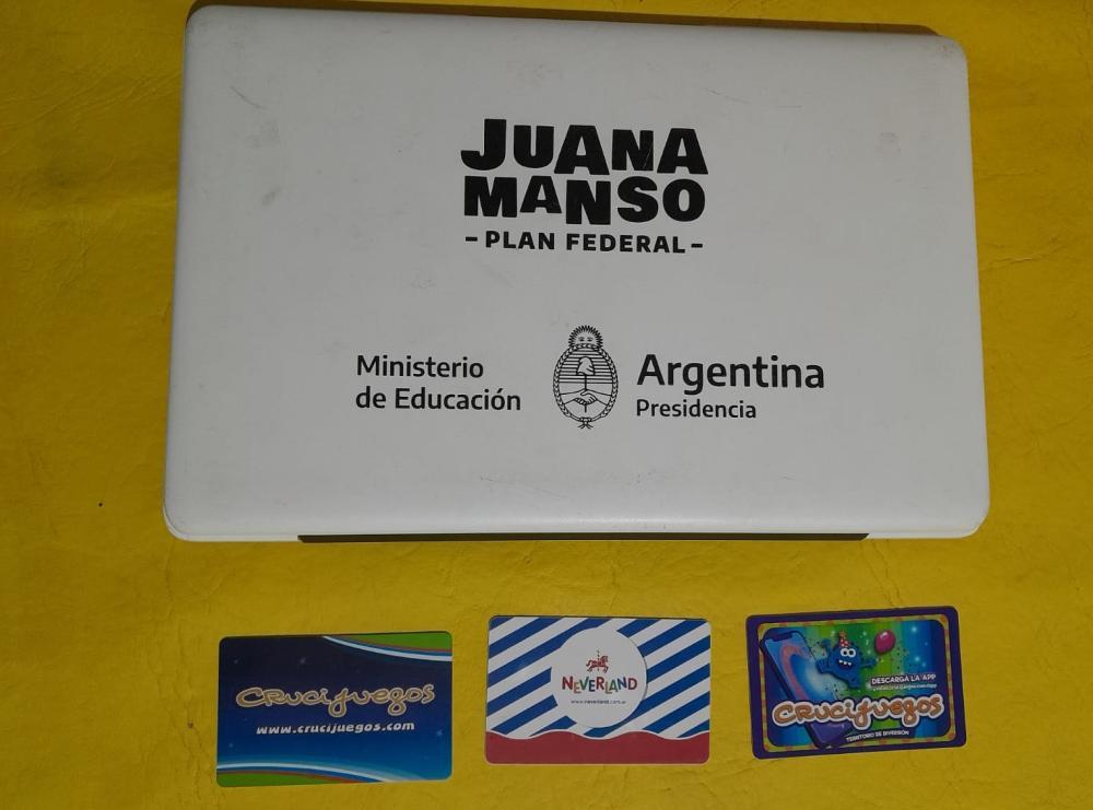 Como resultado, la Policía secuestro una notebook, una netbook del Programa Conectar Igualdad, celulares, otras 18 tarjetas clonadas, es decir con la inscripción de casas de juegos infantiles, un lector de tarjeta, un pendrive, prendas de vestir (que habrían utilizado en otras ocasiones que concretaron estafas) y dos cigarros de marihuana.