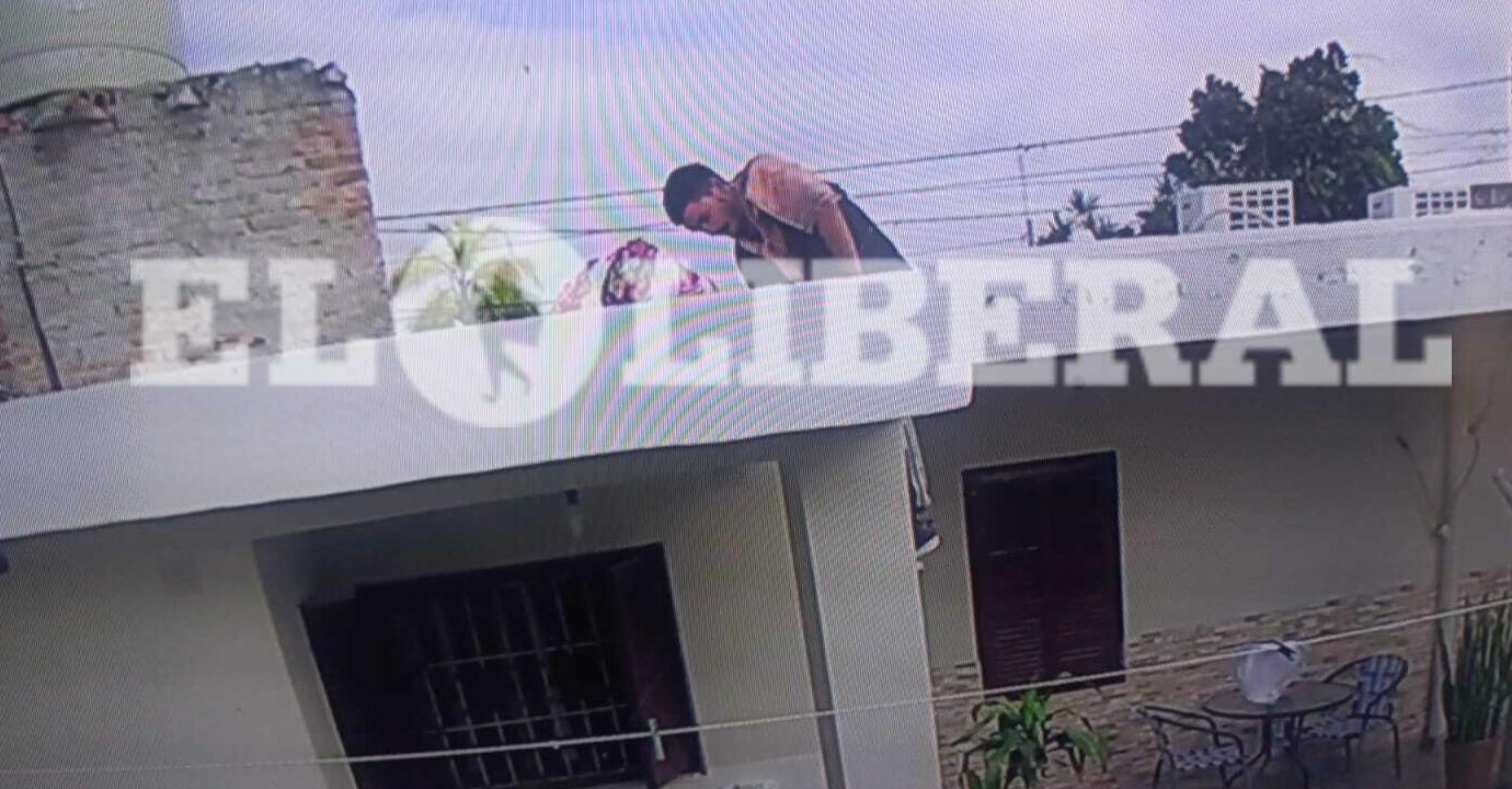 En las imágenes, se pudo observar a un sujeto, cargando los bienes sustraídos y trepándose sobre el techo de la residencia para darse a la fuga por los techos de las casas vecinas.