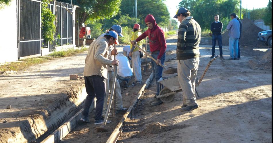 Una de esas obras, es la que se ejecuta actualmente en un tramo de la calle Roque Sáenz Peña en el Barrio Los Pinos, donde a través de la Secretaría de Obras públicas, el municipio construye cordón cuneta.