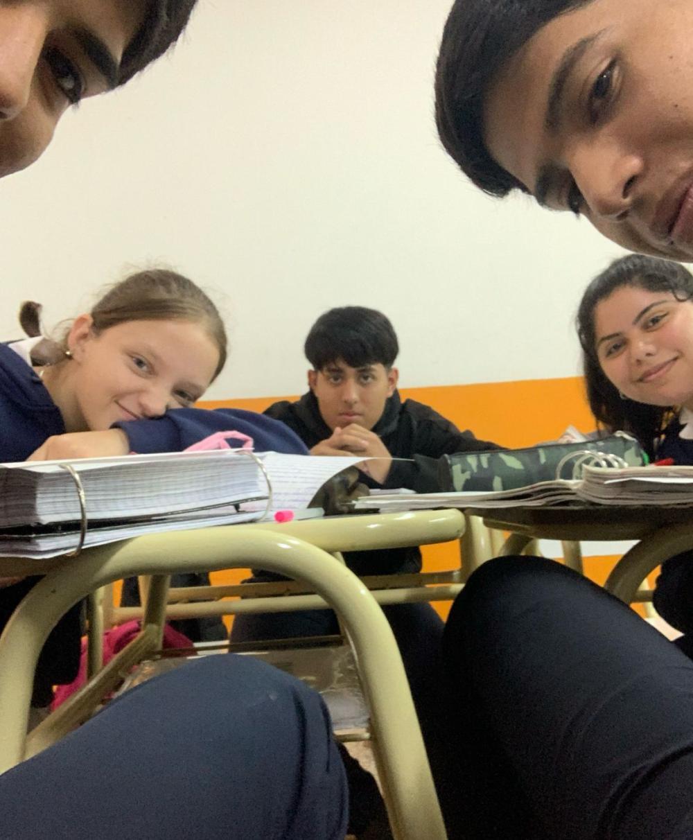 Un grupo de compañeros de Leonel Bustos Ruiz, del 5º año del colegio secundario Escuelas Pías, acaba de tatuarse sus brazos.