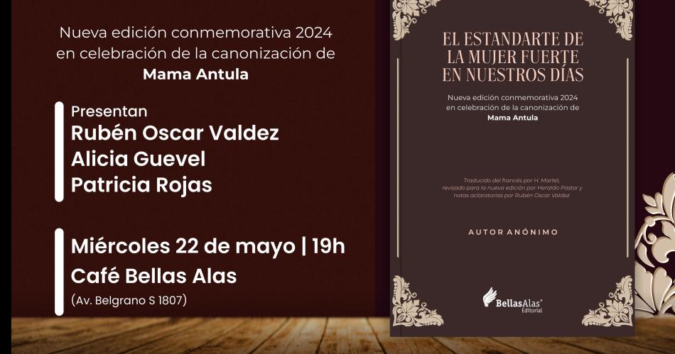 El próximo miércoles 22 se llevará a cabo la presentación de la nueva edición conmemorativa de "El estandarte de la mujer fuerte en nuestros días", a cargo de Rubén Oscar Valdez, Alicia Guevel y Patricia Rojas.
