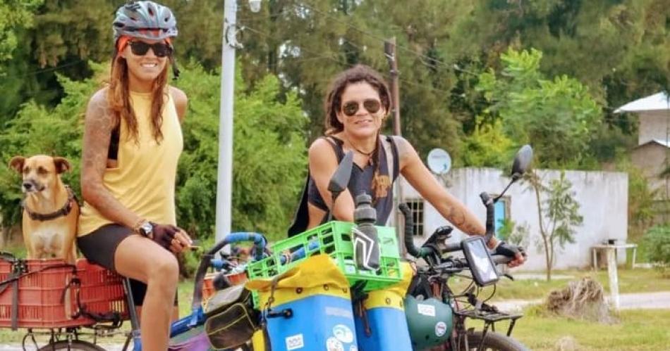 Yvana Sanchéz, Julieta Fernández y Chimarrão, su perro, viajan en bicicleta desde la provincia de Buenos Aires hasta Paraguay, y pasaron por la "Capital de la Tradición", en su camino hacia Chaco para tomar rutas internacionales.