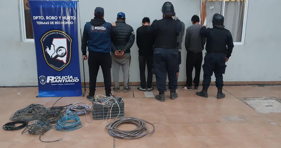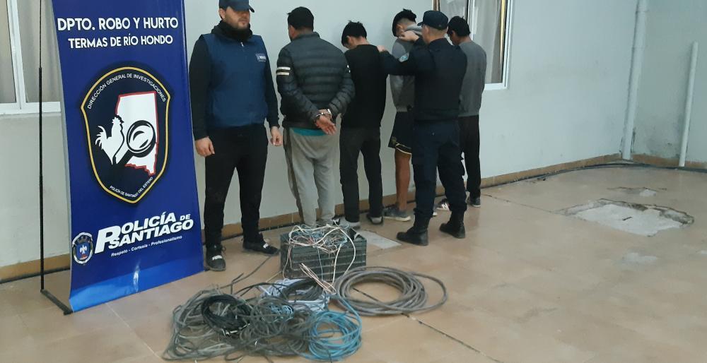 Como resultado, se pudieron recuperar en esos lugares varios metros de cables subterráneos, cables tipo taller y otros tipos, los cuales fueron secuestrados. Además, se procedió al traslado a sede policial de cuatro hombres, los cuales fueron identificados, quedando uno de ellos alojado en calidad de aprehendido por disposición de las autoridades judiciales a cargo de la causa, el juez de control y garantías Dr. Diego Vittar y el fiscal, Dr. Rafael Zanni.