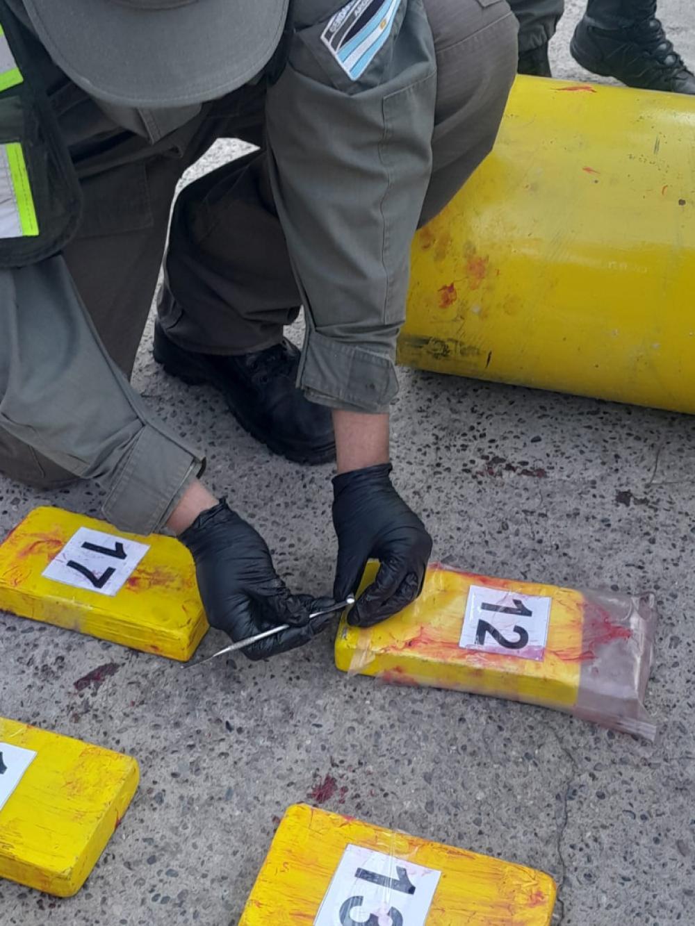 Al momento de la inspección del baúl del rodado, los funcionarios percibieron un fuerte olor a pintura, por lo que solicitaron apoyo del binomio cinotécnico de la Fuerza, que reaccionó al realizar un pasaje frente a los tubos de GNC recién pintados, como usualmente lo hace en presencia de estupefaciente.