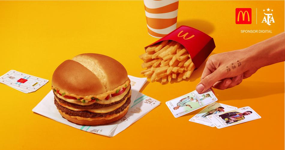 En 2020, McDonald's se convirtió en sponsor digital de la AFA y, desde ese momento, acompaña al equipo albiceleste en todos sus pasos. En esta oportunidad, el objetivo es "hacer el aguante" a los campeones del mundo con una propuesta gastronómica bien argentina junto a las cartas producidas por Panini e inspiradas en el famoso juego que hicieron en la previa a la final contra Brasil, durante la Copa América. Cada participante debía sacar una carta de una baraja española e intentar adivinar cuál era, con 10 intentos por persona. Este juego llevó a la emocionante anécdota de Messi con el cinco de copas y es justamente para revivir aquel momento y hacerle homenaje al equipo ganador, que McDonald's y Panini se unieron para esta novedosa apuesta.