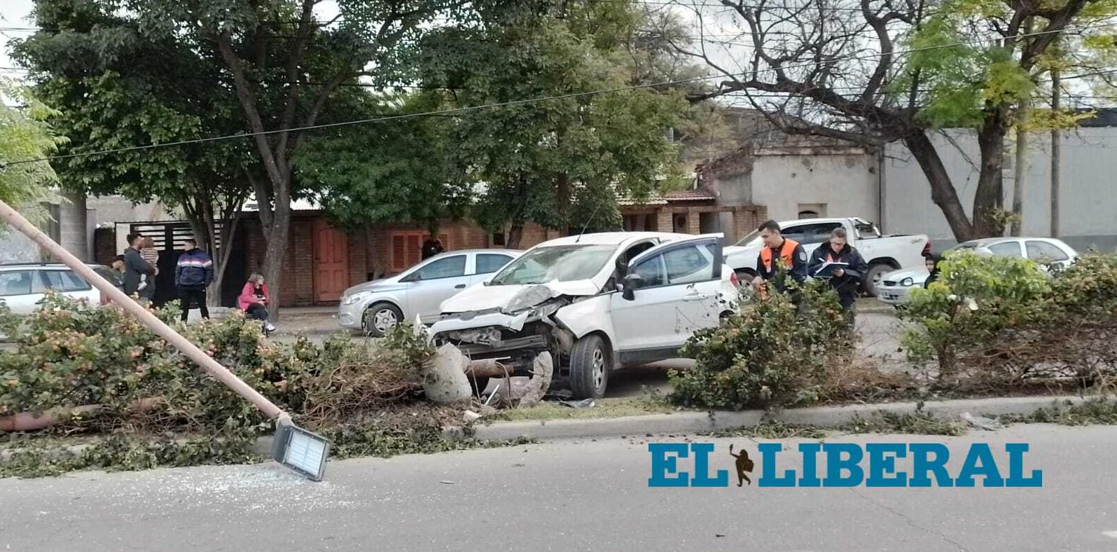 Una mujer estrelló su camioneta contra el alumbrado público en plena Av. Belgrano Una mujer estrelló su camioneta contra el alumbrado público en plena Av. Belgrano