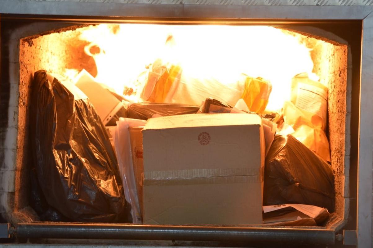 Finalmente, alrededor de las 15 horas, se procedió a la destrucción por incineración de más de 12 kg de sustancias estupefacientes (cocaína y marihuana), además de balanzas, recortes, licuadoras, plantas de cannabis sativa, entre otros elementos.