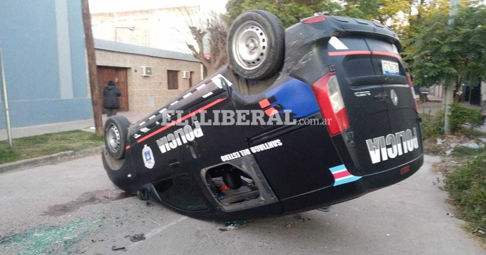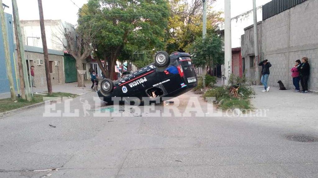 La tranquilidad de la tarde santiagueña se vio interrumpida por un violento choque que tuvo como protagonista a Móvil de la Policía de la provincia, que resultó embestido por un automóvil particular. El fuerte impacto hizo que el rodado oficial volcara y rompiera varios de sus vidrios.