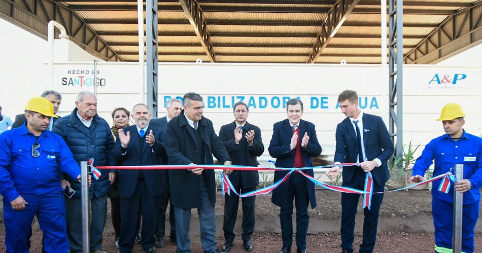 Finalmente, Zamora presidió el acto en el predio de la planta potabilizadora donde se puso en marcha un sistema de tratamiento superficial con una capacidad de 150.000 litros por hora para incorporar al servicio de agua de Quimilí, que permite garantizar una normal prestación por los siguientes 30 años.