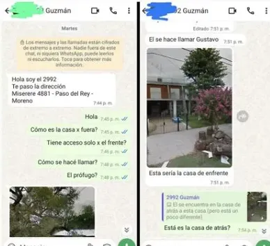 Minutos después el vecino le mandó una foto de la fachada de la vivienda y le confirmó que Abel Guzmán se hacía llamar Gustavo y que "estaba un poco diferente".