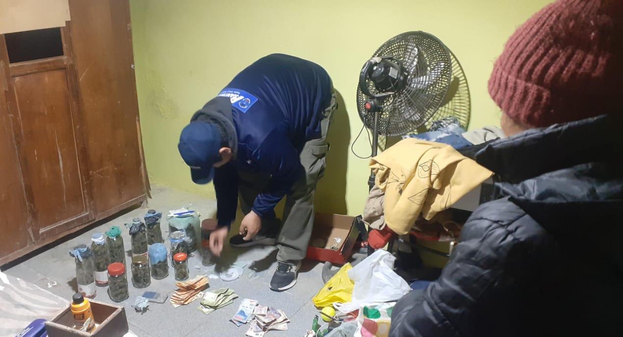 Además, se secuestraron cuatro armas de fabricación casera, caños galvanizados, una amoladora de mano, una soldadora eléctrica, una garrafa de 3 Kg y cartuchos. Durante la requisa se advirtió la presencia de una sustancia vegetal en pequeños envoltorios de nylon, plantines de cannabis, una sustancia polvorienta de color blanco y dinero en efectivo, por lo cual se le dio participación a personal de la Dirección General de Drogas Peligrosas, quienes realizaron las pruebas de campo, confirmando que se trataba de todas sustancias prohibidas.