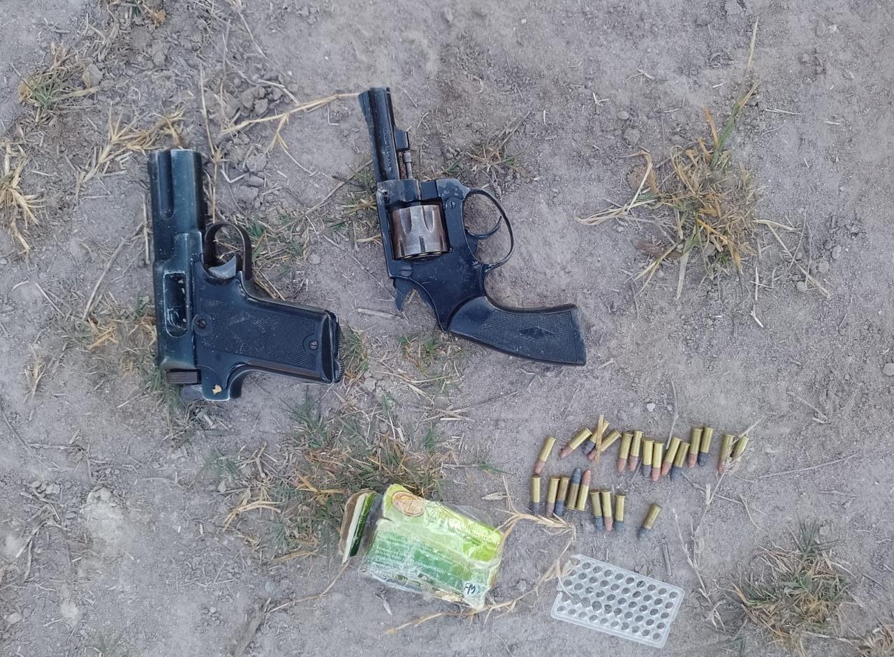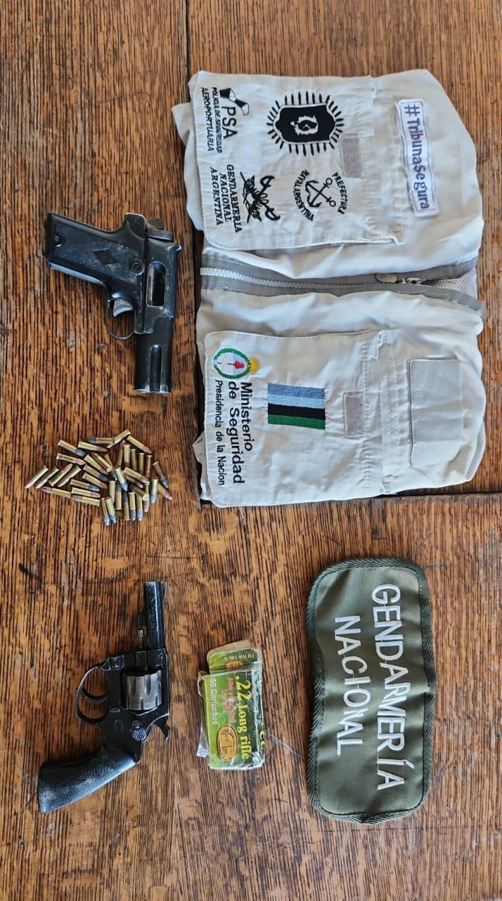 Durante el procedimiento de control y requisa, se incautaron dos armas de fuego cargadas: una pistola negra, marca GMC calibre 22, con cargador para 8 proyectiles y numeración borrada; y un revólver negro, calibre 22 largo, marca Pehuen, sin número, con tambor de 8 alveolos. También se secuestraron 23 cartuchos de 22 largo marca Fabricaciones Militares y 16 cartuchos calibre 22 colocados en los cargadores de ambas armas. Adicionalmente, se encontraron 250 gramos de marihuana y 15 gramos de cocaína.