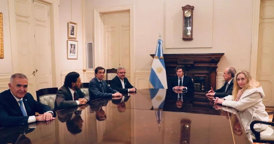 Según se supo, los mandatarios provinciales Carlos Sadir (Jujuy); Gustavo Sáenz (Salta); Osvaldo Jaldo (Tucumán); y Raúl Jalil (Catamarca) visitaron al mandatario para manifestar su respaldo a la aprobación definitiva de la Ley Bases y el paquete fiscal.