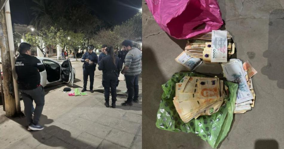 Los uniformados realizaron una requisa en el auto, por orden del fiscal Ezequiel Bustamante y con autorización de la jueza de Control y Garantías, Dra. Ana María González Ruiz. Allí se halló una bolsa de nailon con $1.978.300 cuya tenencia no pudo ser justificada por los ocupantes.